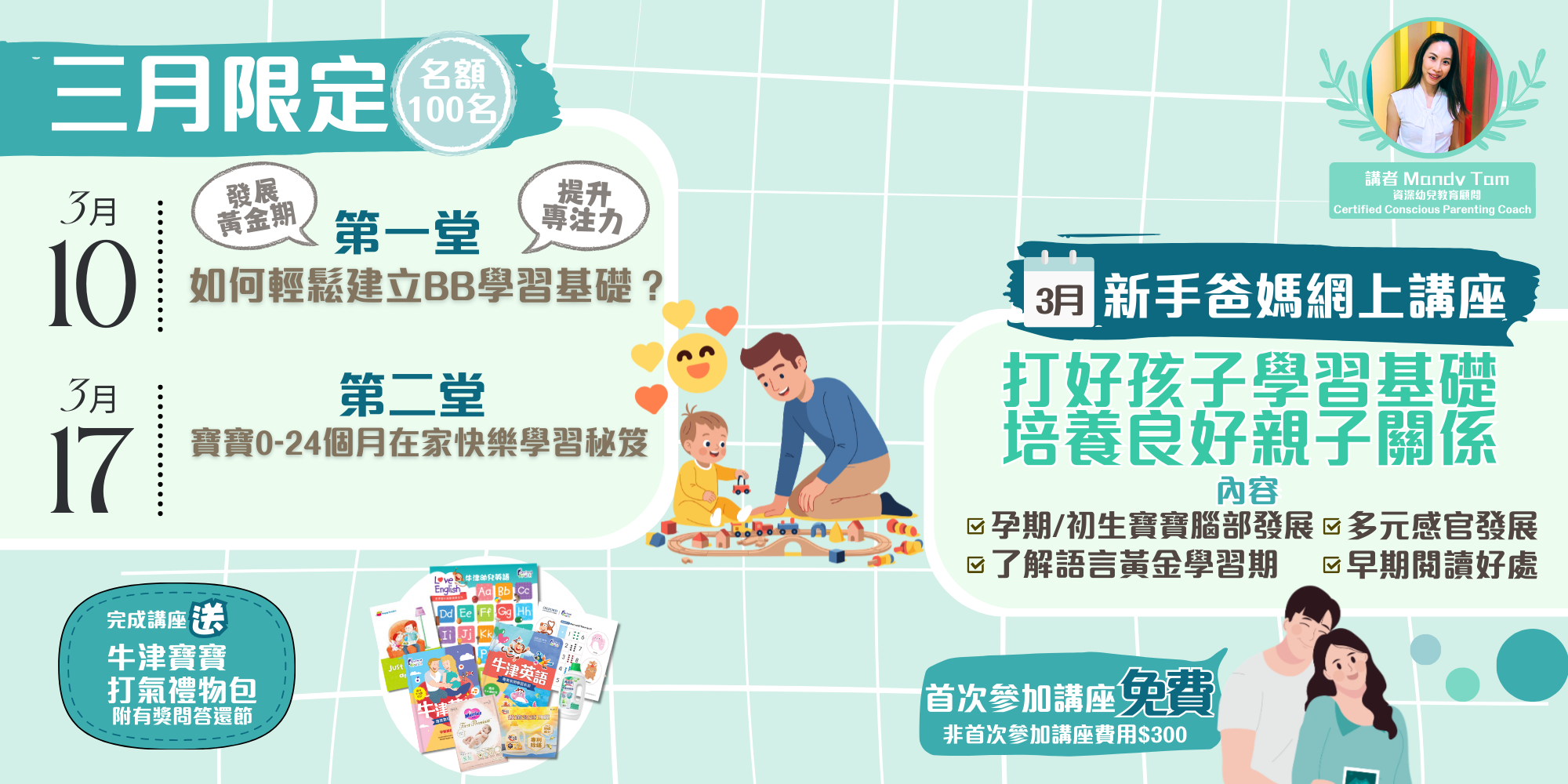 講座適合準父母及0至2歲孩子家長,參加者更可獲🎁免費「牛津寶寶打氣禮品包」乙個!